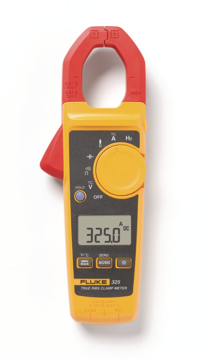 Fluke 325 sand RMS tangmeter kombinerer generelle elektriske målinger med temperatur, kapacitans- og frekvensfunktioner samt måling af DC-strøm i ét solidt fejlfindingsværktøj. Sand RMS-måling og optimeret ergonomi gør 320-seriens tangmetre til det bedste generelle fejlfindingsværktøj til bolig- og industrielektrikere. Fluke 325 er beregnet til at undersøge tilstedeværelsen af arbejdsstrøm, AC-spænding og gennemgang i kredsløb, omstillere, sikringer og kontakter. De små og robuste tangmetre egner sig ideelt til strømmålinger op til 400 A i trange kabelrum.