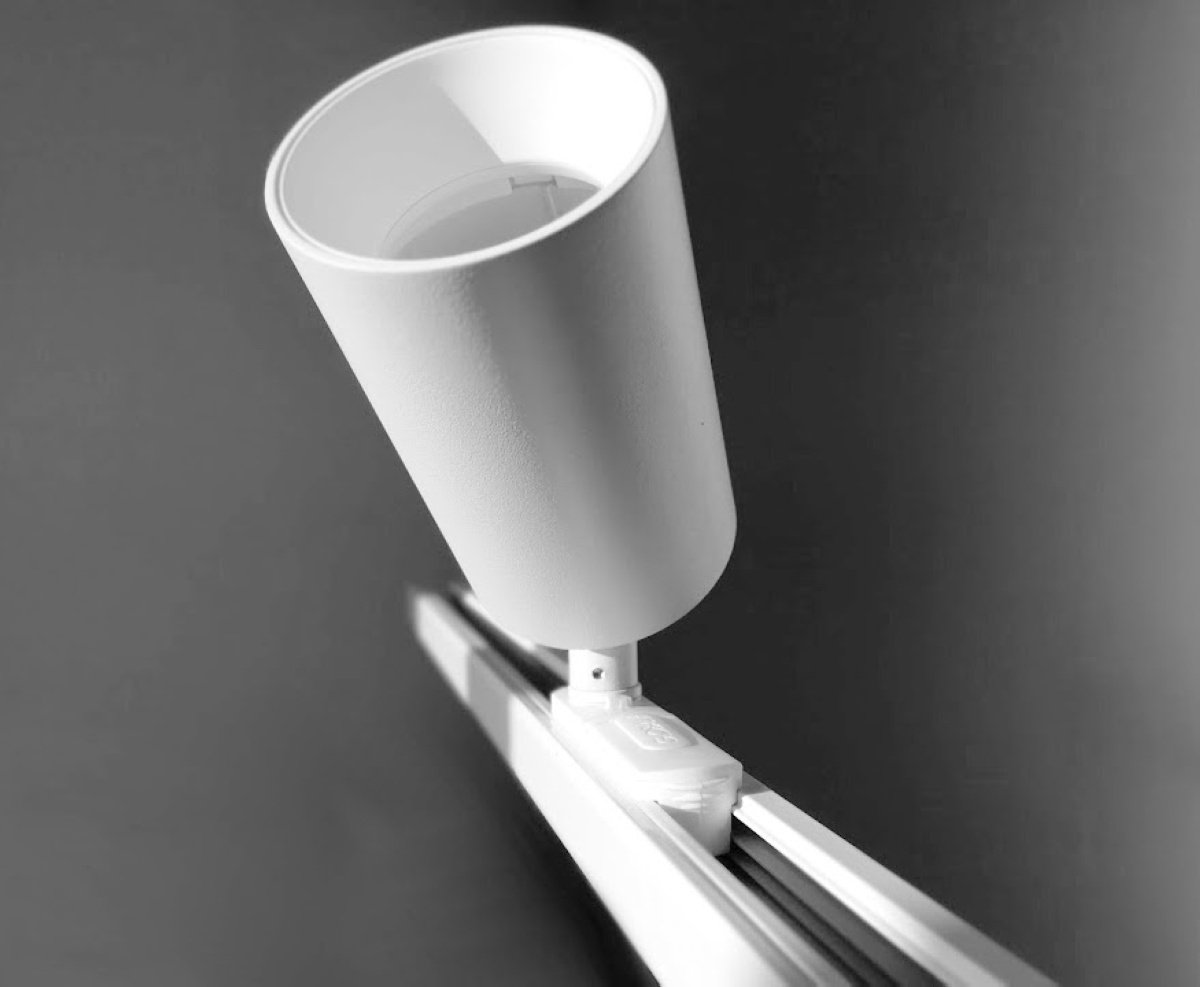 Flot en enkel spot til GB-1-faset skinneskinnesystemer. Enkelt at montere og udskifte GU10 pæren. Fronten giver spottet har et lækket design, med en front som gør pæren tilbagetrukket og dermed er med til at lyset kastes i den valgte retning.