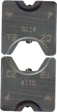 Pressebakkepar til værktøj T2600, V600, V611 og PVX611. Anvendes til presning af Cu-afgreninger med C-muffer, oval presning. Bakkenr. C5: C6-10. Bakkenr. C6: C16-25.