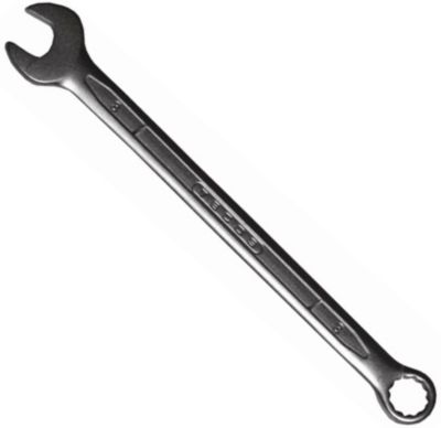 Tecos ringgaffelnøgle i Chrom Vanadium stål med blankpoleret hoved og silkemat overflade. Perfekt pasform og 12-kant i ringsiden med 15° vinkling.