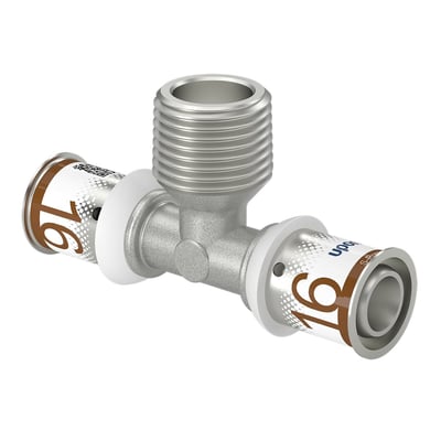 Uponor S-Press MLCP – Tee gevindovergang m. preskoblinger/nippel,Uponor S-Press MLCP – Tee gevindovergang m. preskoblinger/nippel, 16 x ½" x 16 mmUponor S-Press MLCP – Tee gevindovergang m. preskoblinger/nippel, 25 x ¾" x 25 mmUponor S-Press MLCP – Tee gevindovergang m. preskoblinger/nippel, 32 x ¾" x 32 mm