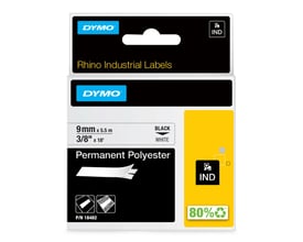 - Bruger Dymo 6, 9, 12 mm D1-tape.