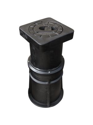Teleskopisk dæksel i firkantet design (150x150 mm) med en justerbar højde fra 270-420 mm. Kan modstå en belastning på op til 20 tons.
