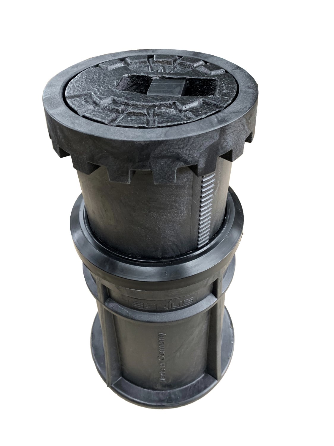Teleskopisk ventildæksel fra Isiflo i komposit. Dimensioner: 152 x 270-420 mm, rund.