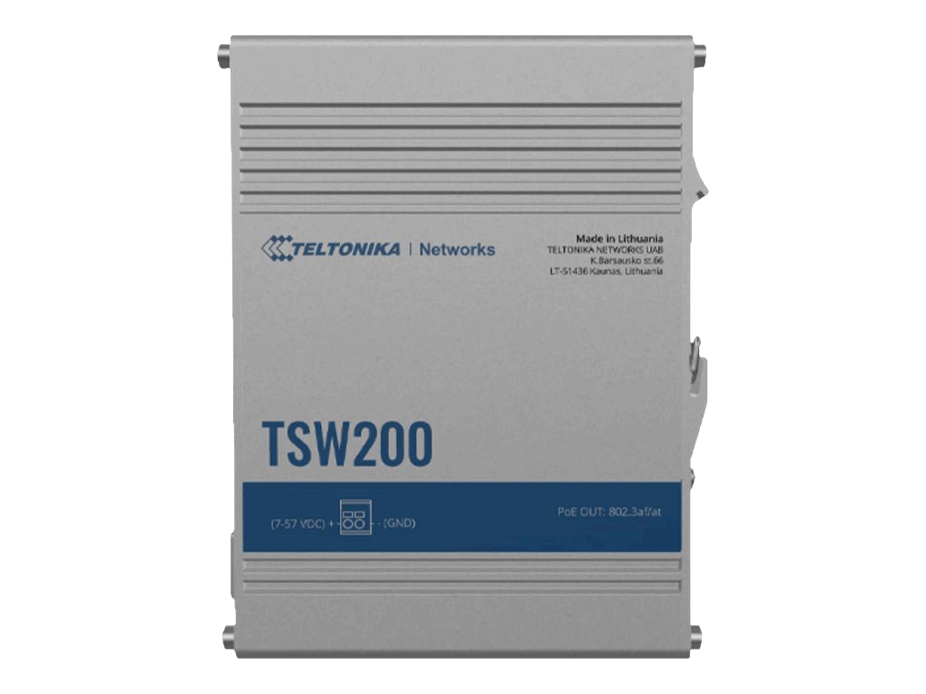 TWS200 er en industriel Ethernet switch med 2 SFP porte til fiberoptisk kommunikation og 8 Gigabit Ethernet porte, der understøtter IEEE802.af og IEE802.3at Power-over-Ethernet standarder. Klassificeret som Power Source Equipment (PSE), muliggør den centralisering af strømforsyningen, hvilket giver op til 30 watt per port og reducerer indsatsen for at installere strøm.