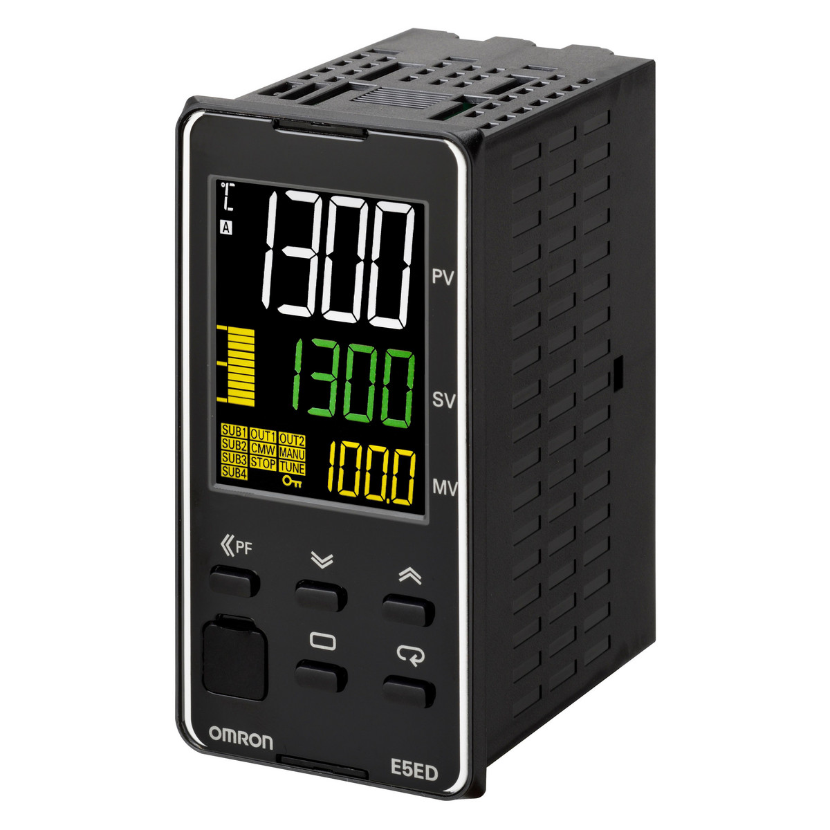 Denne temperaturregulator er en model E5ED-QX4ABM-000 PRO, der passer i en 1/8 DIN standardstørrelse (96 x 48 mm). Den er designet til præcis temperaturstyring i en række applikationer.