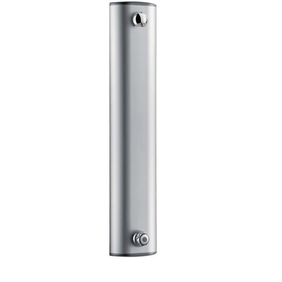 Dette Tempomix brusepanel er udført i grå elokseret aluminium og er udstyret med et rundt brusehoved samt et blandingsbatteri, der giver brugeren mulighed for selv at vælge mellem varmt og koldt vand.