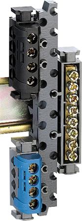 Monteres på DIN-skinne med universel support Kat.Nr 0 048 11, eller på 12 x 2 flat bar Fase (sort). Antal af forbindelser: 8 x 1.5 til 16 MM2. Længde: 75 mm.