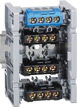 Beslag til samling af terminalklemmer. Understøtter forbindelse af op til 4 IP 2X terminalklemmer af samme størrelse for at lave en fordelingsklemme.