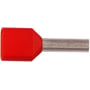 Isoleret TWIN-terminalrør til 2x1mm² Cu-leder. Fortinnet kobber med rød PP-isolering. Længde 8mm.
