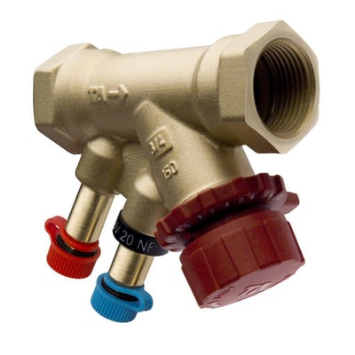 Terminalventil type TBV med synlig forindstilling, uden aftap og med håndhjul. Anvendes i cirkulationssystemer for køle- og varmeanlæg.