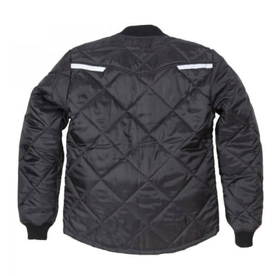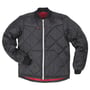 Quiltet jakke med høj isoleringsevne. Velegnet som overtøj eller mellemlag. Med rødt kontrastfor, ribkant på ærmer og krave, lynlås foran og to forlommer. Materiale: 100% polyester.