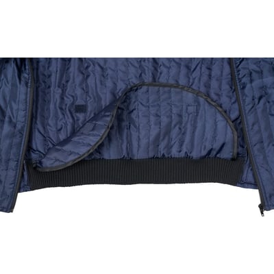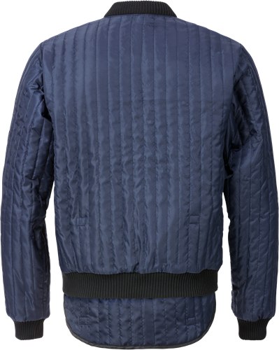Let quiltet jakke med forlænget ryg, der kan gemmes væk. Materialets silkelignende overflade gør den nem at tage af og på, og egner sig perfekt som mellemlag.