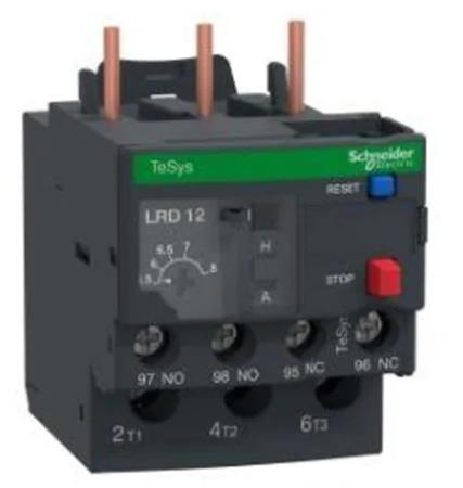 TeSys D termorelæ 8 A/690V med termisk indstillingsområde 5.5-8A og udløserklasse 10A. Til beskyttelse af 3-fasede motorer 3kW@400V.