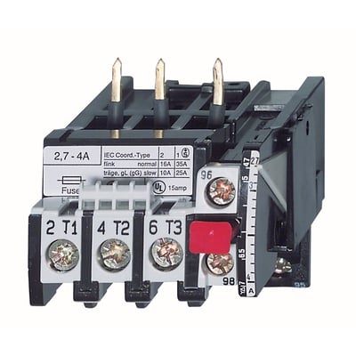 Termorelæ til direkte montage på kontaktorer K3-10 til K3-22. Med manuel reset og 1NO og 1NC hjælpekontakt.