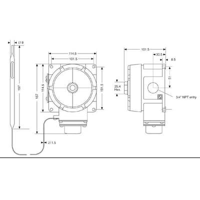 Mekanisk termostat til BTV, QTVR, KTV & XTV varmekabler i Zone 1 og 2 samt Zone 21 og 22. Typisk anvendelse er frostsikring og temperaturvedligeholdelse af rør og beholdere.