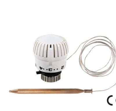 Termostat med M30 x 1.5 tilslutning, 2 m fjernføler og temperaturområde 20-70°C. Ideel til temperaturstyring af varmeblæsere, varmtvandsbeholdere og varmevekslere.