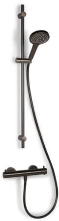 Termostatarmatur inkl. 90 cm håndbrusesæt med 3 stråletyper og 1500 mm bruseslange i gun metal.