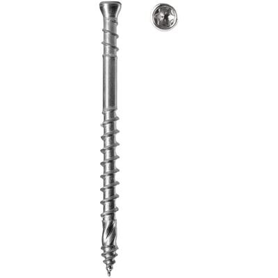 Denne terrasseskrue fra Fischer er designet til skjult montering i træterrasser. Den er fremstillet i A4 rustfrit stål, hvilket gør den særligt modstandsdygtig over for korrosion, selv i aggressive miljøer som kystnære områder eller ved swimmingpools.