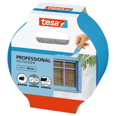 Afdækningstape til udendørs brug fra Tesa. Mål: 38 mm x 25 m. Farve: Blå.