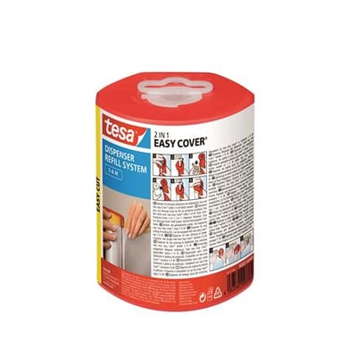 Tesa Easy Cover Dispenser gør afdækningsopgaver nemmere. Den er præcis, let at bruge og garanterer jævne snit i tape og folie. En sikkerhedskniv minimerer risikoen for skader.