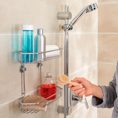 Hold dine toiletartikler inden for rækkevidde med Tesa® Draad brusekurv. Den har plads til hele familien og monteres nemt med klæbemiddel, uden at bore.