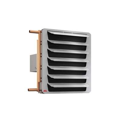 Effektiv vandvarmeventilator med EC-motor. Ideel til opvarmning af rum med en driftsspænding på 4003V~ og frekvens på 50/60 Hz.
