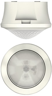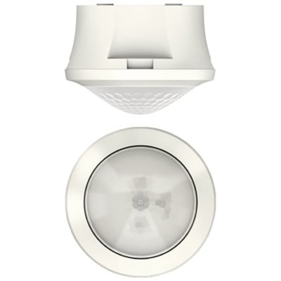 Passiv infrarød bevægelsessensor til loftmontering. 2 kanaler til automatisk bevægelses- og lysstyrkekontrol. 360° detektering op til 64 m².