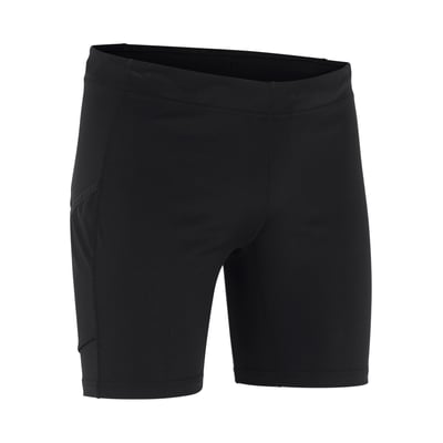 Kort, sort tights i blød, funktionel interlock kvalitet med flatlock sømme. Giver øget strækbarhed og bevægelsesfrihed. Med indvendig linning, elastik og snorejustering.