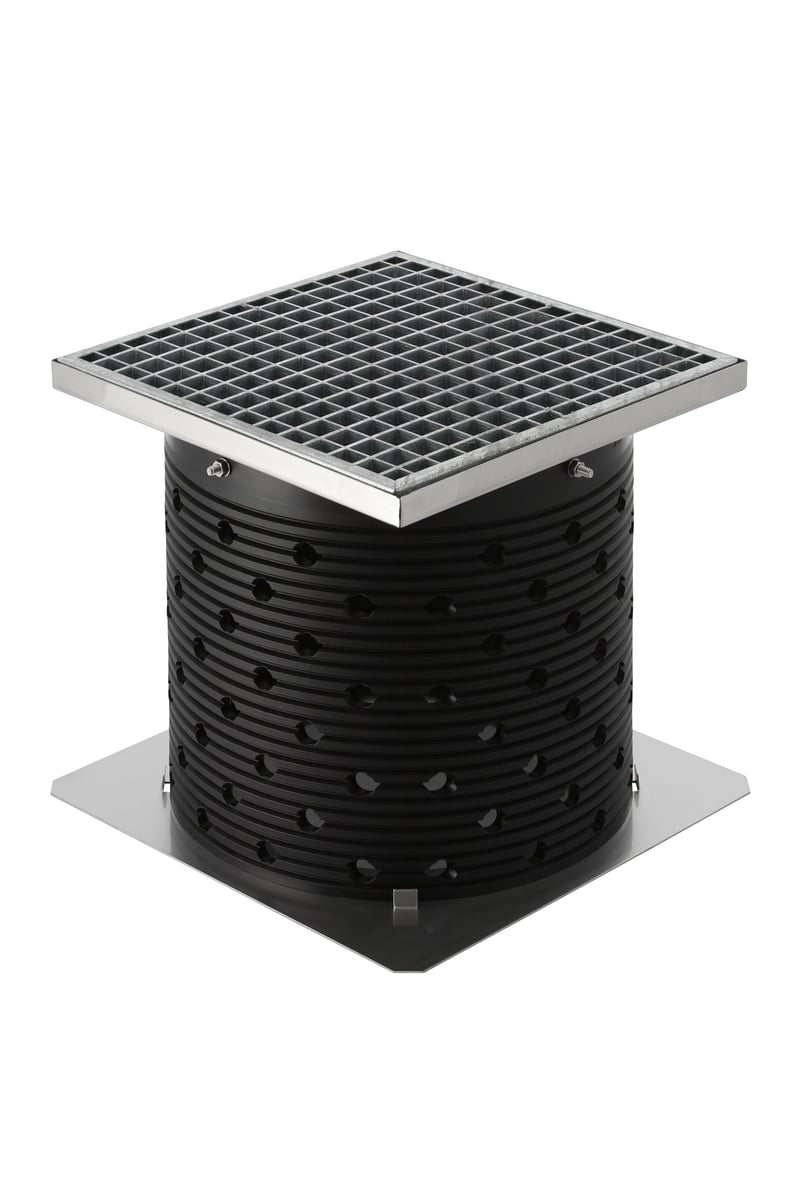 Geberit Pluvia tilbehørssæt til tagbrønd for opholdsarealer. Gør tagbrønden sikker i opholdsarealer.