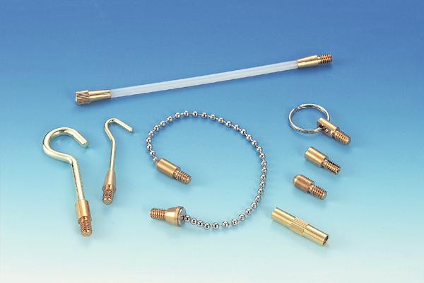 Komplet sæt med tilbehør til Cable Scout+ søgefjeder. Indeholder fleksibelt rør, kugle, omkobler, magnet, kæde, øje og krog.