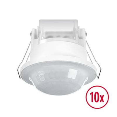 Sæt med tilstedeværelsessensorer med 360° detekteringsvinkel til indbygning i loft. Rækkevidde op til 8 m i diameter ved 2,5 m højde.