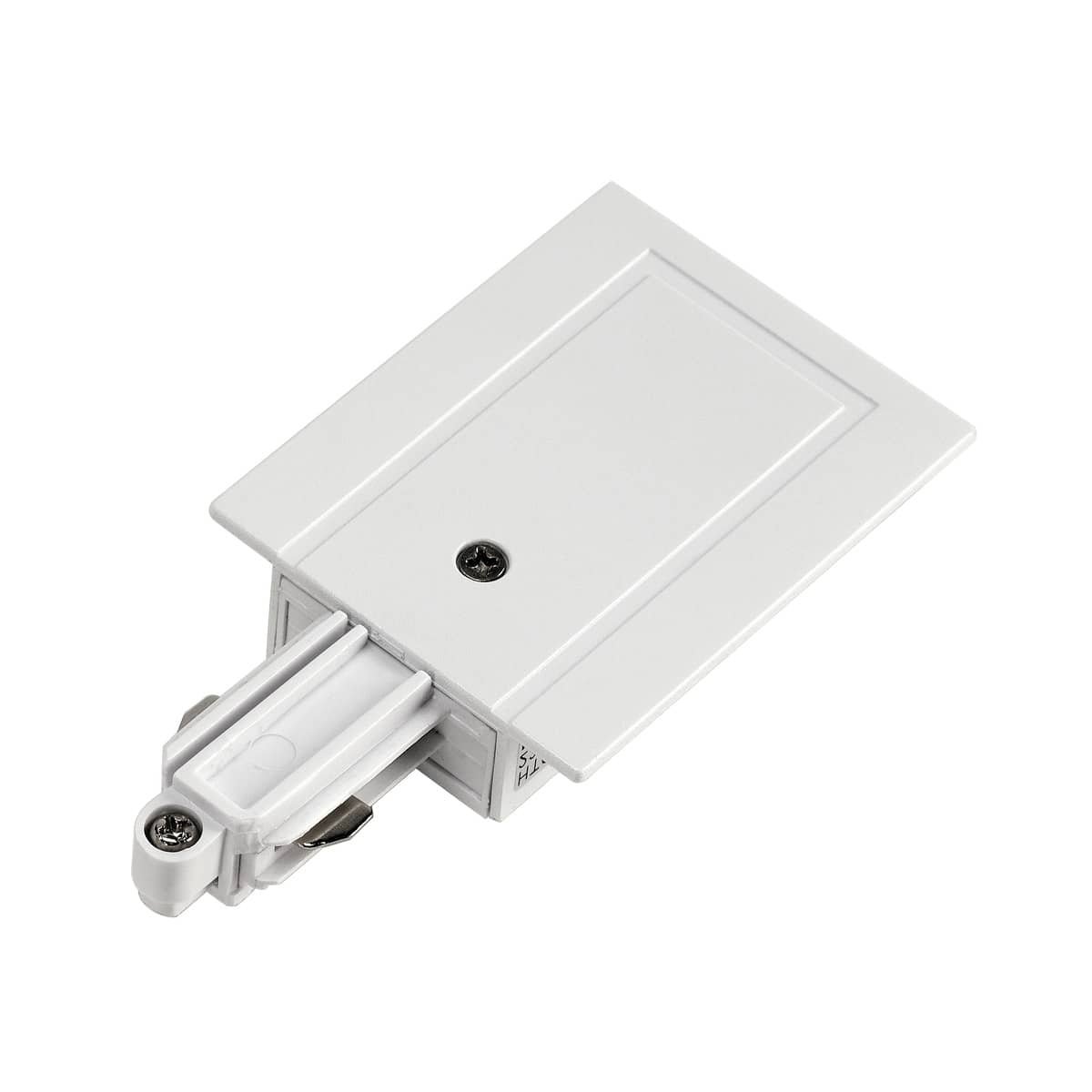 Denne endestrømforsyning er designet til at give en pålidelig og diskret tilslutning til et 1-faset system af indbygningsskinner. Med jordledning placeret til venstre sikres en korrekt og sikker installation. Produktet er udført i hvid plast, hvilket gør det let at integrere i de fleste indretninger uden at skille sig ud.