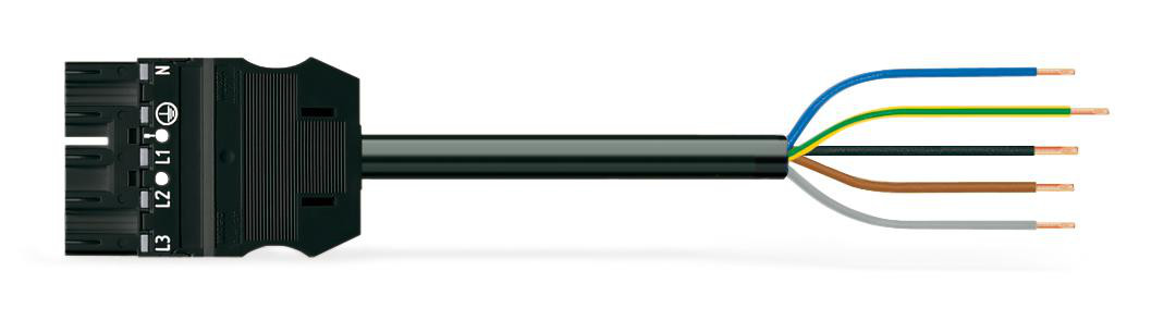 8 meter tilslutningskabel med hanstik og fri ende, 5-polet, sort.