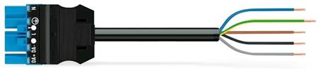 Formonteret tilslutningskabel med stik/åben ende, 5-polet, H05Z1Z1-F 5G 1,5 mm², 4 m, 1,50 mm², blå.