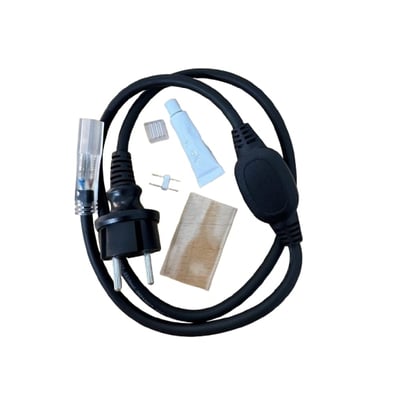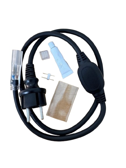 Sort 1 meter tilslutningskabel til Budget 230 LED strip. H07 gummikabel med IP67-klassificering.