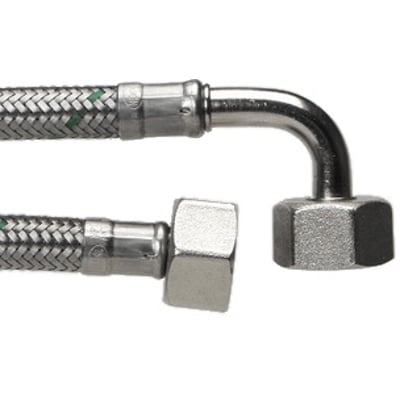 Fleksibel tilslutningsslange af høj kvalitet til både koldt- og varmt brugsvand. Bruges typisk til toiletter, vaske- og opvaskemaskiner og kaffemaskiner. Kan også bruges til teknisk vand. Kan holde til et tryk på 10 bar ved 90°C. Den ene ende er vinklet 90 grader.