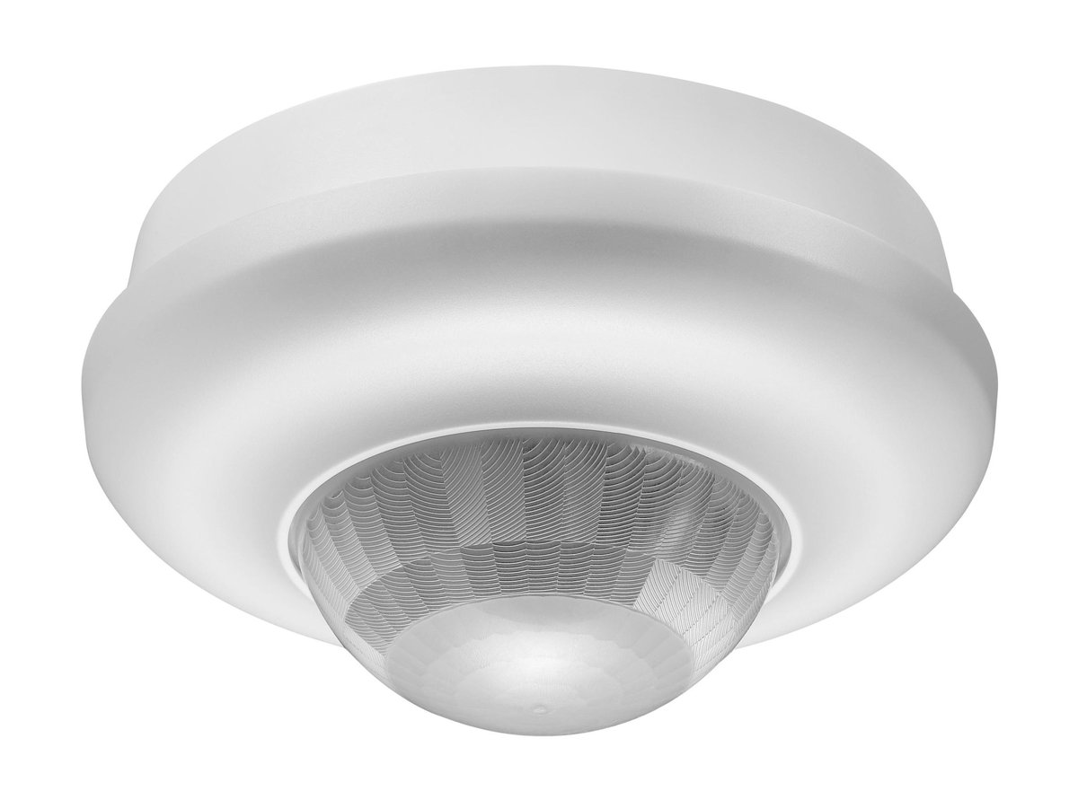 Loftmonteret tilstedeværelsessensor med DALI addressable bus. Nem installation og fleksibel styring via IR-fjernbetjening.