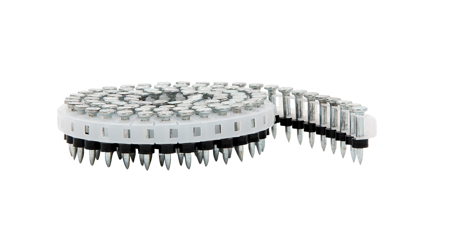 Elgalvaniserede betonsøm, 3,0 x 22 mm, til fastgørelse af metal på beton. Leveres i tromle med 1000 stk. til brug i kompatible sømpistoler.