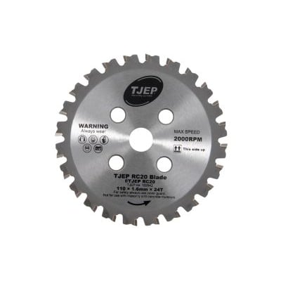 Hårdtmetal klinge til skæring af armeringsjern uden grater. Ø110mm, 1,6mm snitbredde, 15mm boring, 24 tænder.