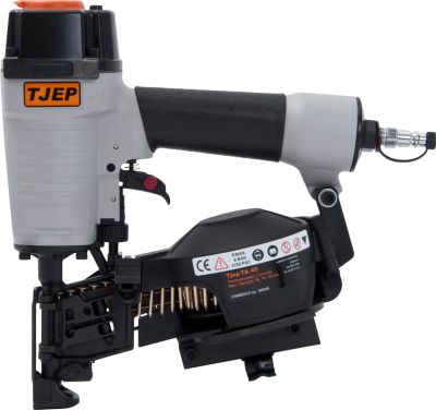 Tjep TA-45 tagpappistol til sømning af tagpap, vindspærre, tynde metalplader og inddækninger. Pistolen har integreret sømstyring, justerbar udblæsning og slagdybde.