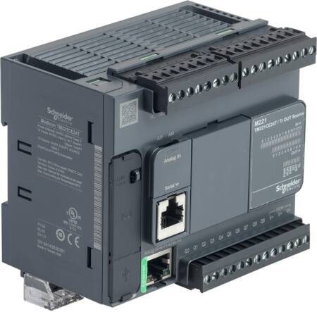 TM221 controlleren er en del af Modicon M221 Logic controller serien. Den har 24 logik I/O og forsynes med 24Vdc.