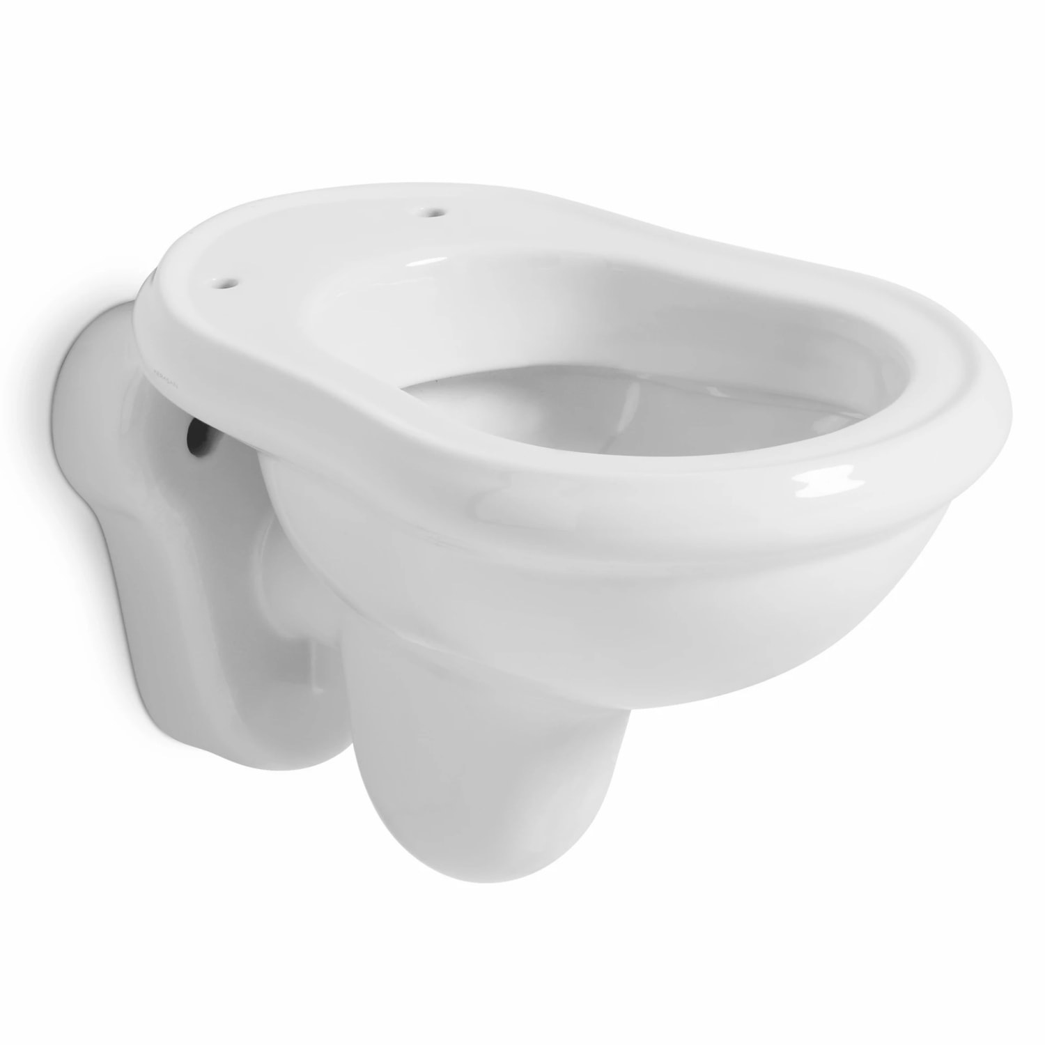 RETRO væghængt toilet i hvid porcelæn i retro design. Med skjult montering. Med skyllekant (rim). Uden sæde. Mål 380x520x340 mm.