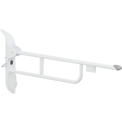 Højrevendt toiletstøtte på 850 mm, højderegulérbar i hvid. Ideel til bad og toilet.