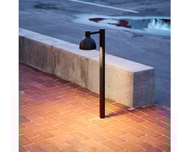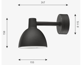 Toldbod 290 lygten er designet til udendørs brug og giver et behageligt, nedadrettet lys. Den matte, hvide inderside af skærmen sikrer en blød og jævn lysfordeling.