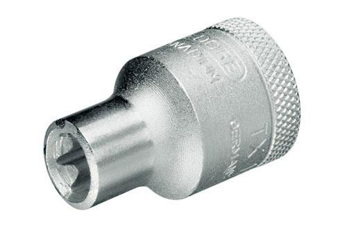 1/2" top til udvendig Torx E12 med firkantsdrev iht. DIN 3120 - C 12,5, ISO 1174. Håndbetjent med skridsikker knurling. GEDORE vanadium stål 31CrV3, poleret, forkromet.