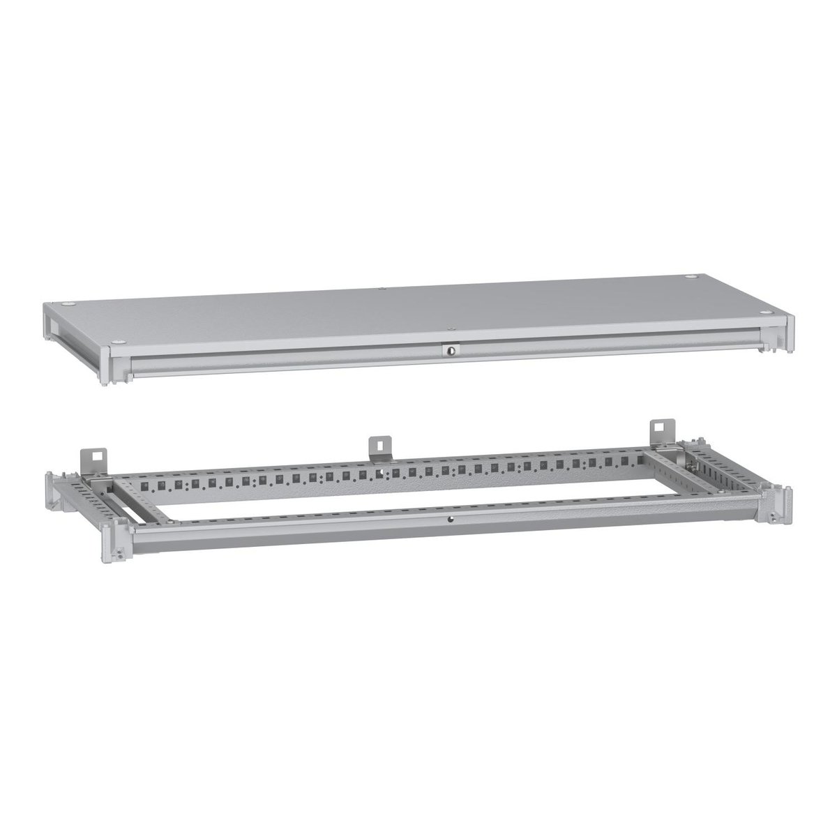 Ramme bund+top med tagplade til PanelSeT SFN skab. Dimensioner: 1000x400 mm. Fremstillet af genbrugsstål med reducerede CO2-emissioner og minimal brug af farlige stoffer.