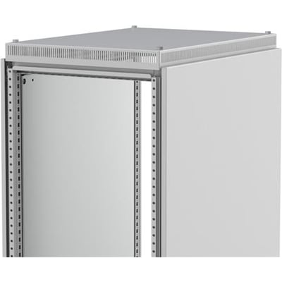 Hævet tag med ventilationsslidser og filtermateriale. Fremstillet af 1,5 mm stålplade med RAL 7035 struktur pulvermaling. Øger skabets højde med 40 mm.