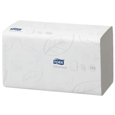 Tork håndklædeark i 3-lags papir, V-fold design for optimal aftørring. Perfekt til dispensere.