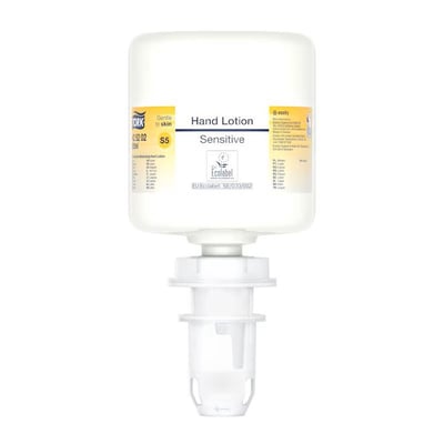 Tork Sensitiv håndlotion til tør hud. Gør huden blød og velplejet. Uden parfume, med fugtgivende ingredienser. Passer til Tork Mini Dispenser.